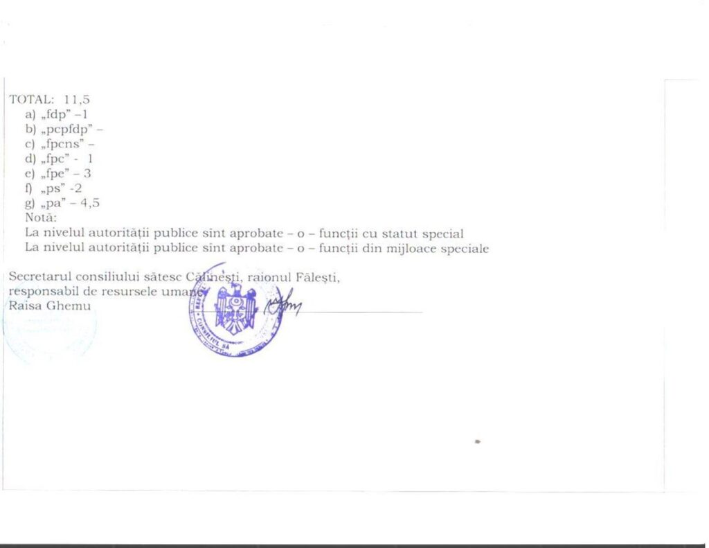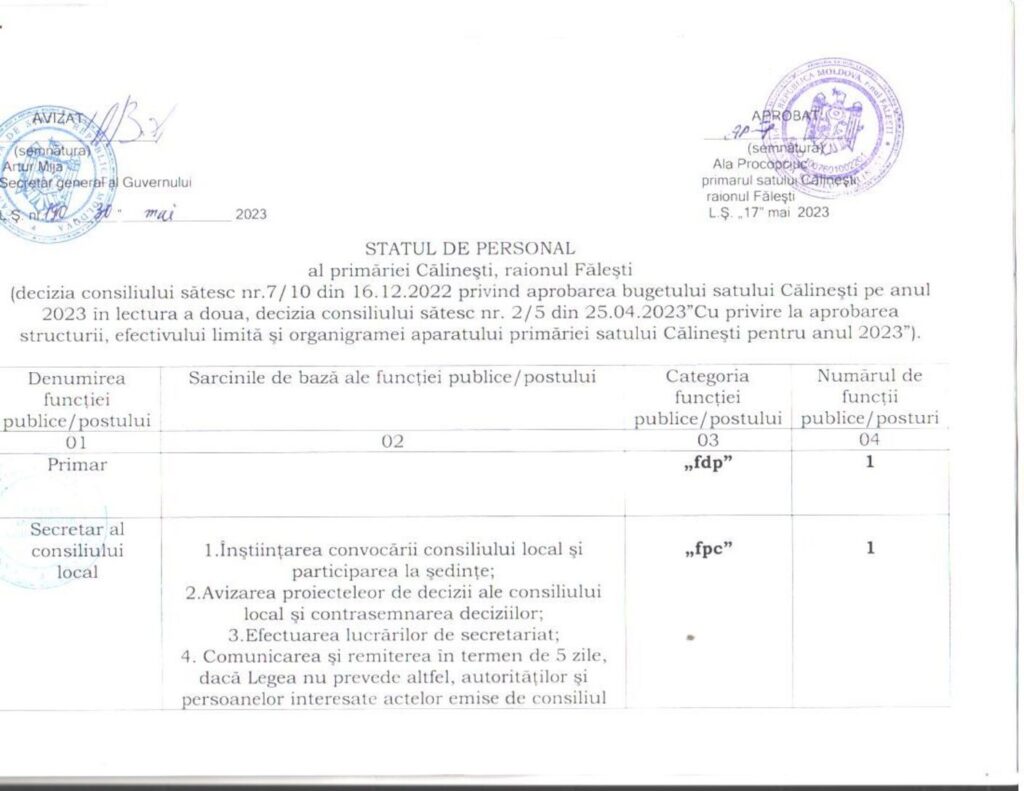 Decizie 2-5 din 25.04.2023 Cu privire la aprobarea structurii, efectivului limită şi organigramei aparatului primăriei satului Călineşti pentru anul 2023