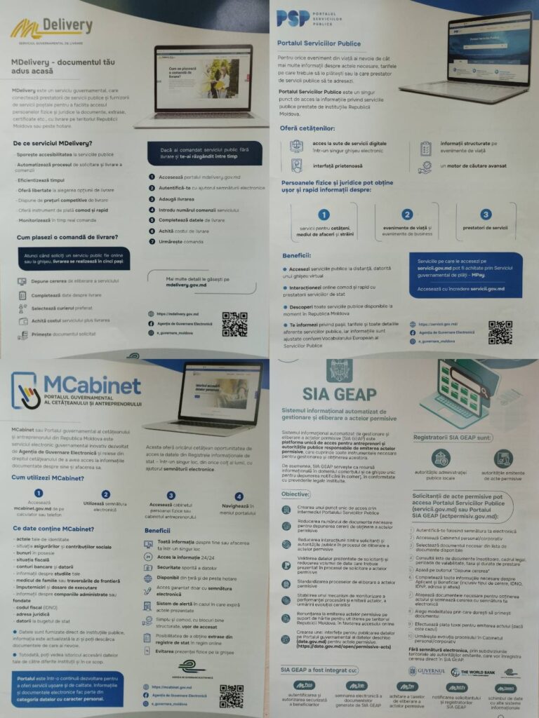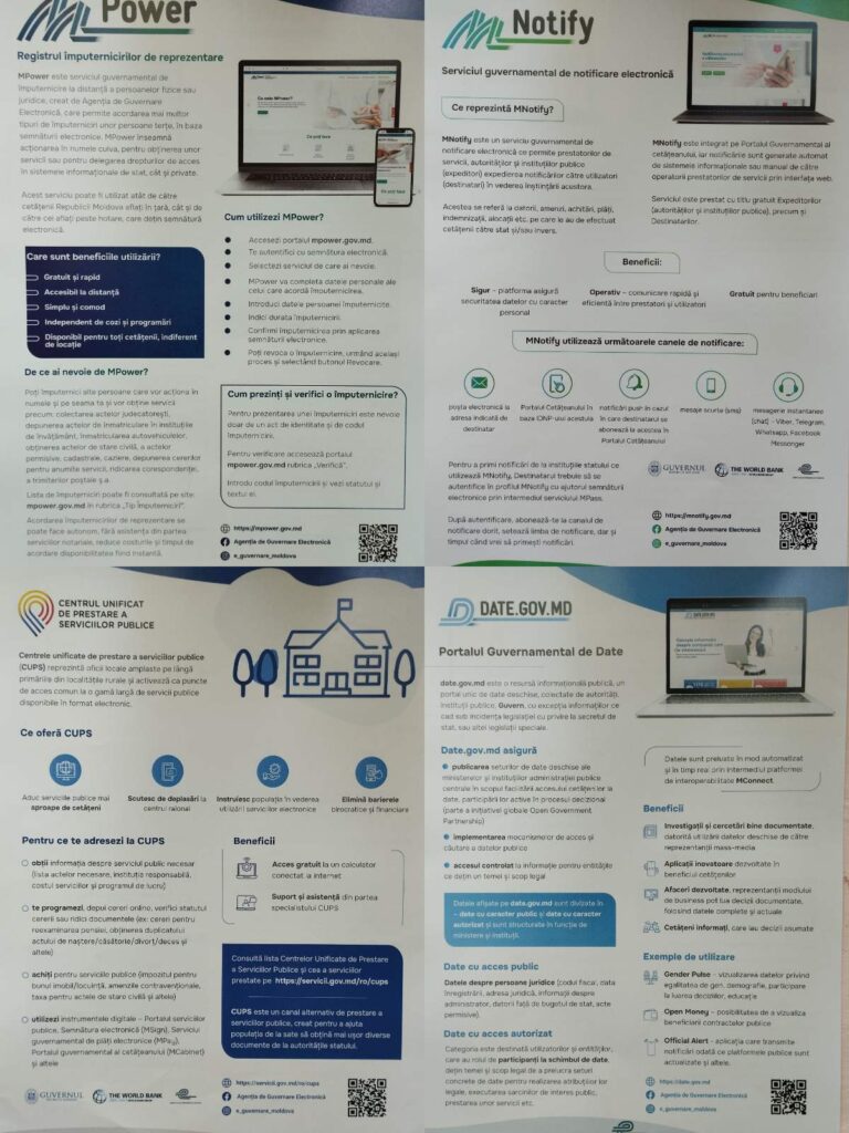 - accesarea instrumentelor digitale cum ar fi: portalul serviciilor publice, semnătura electronică, plăți electronice (MPay), portalul guvernamental al cetățeanului (MCabinet), registrul împuternicirilor de reprezentare (MPower), etc.