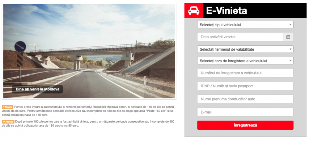 ***Al doilea serviciu este E-Vinieta , taxa pentru folosirea drumurilor Republicii Moldova de către autovehiculele neînmatriculate în Republica Moldova