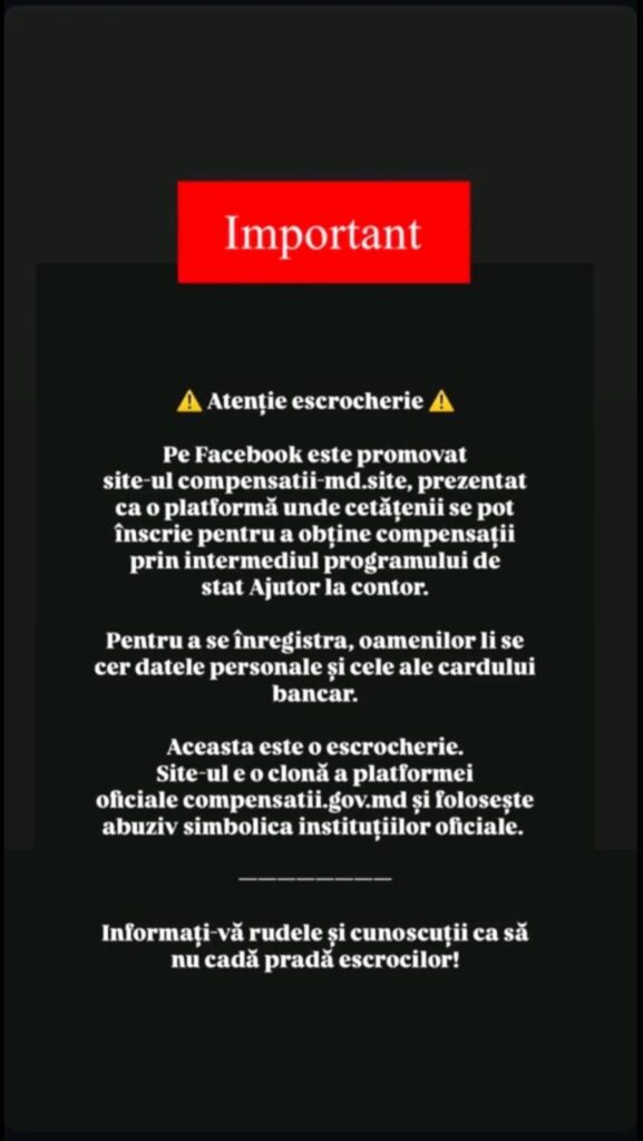 Fiți prudenți, analizați informația văzută/primită și verificați veridicitatea ei, nu vă lăsați influențați de escroci!!!
