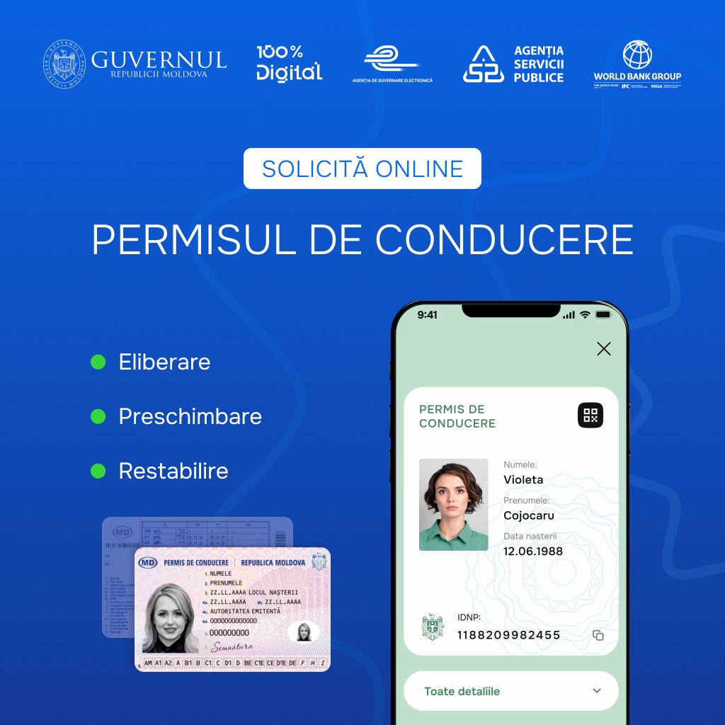 Deja poți solicita online eliberarea, preschimbarea și restabilirea permisului de conducere, direct din EVO sau de pe servicii.gov.md/ro.